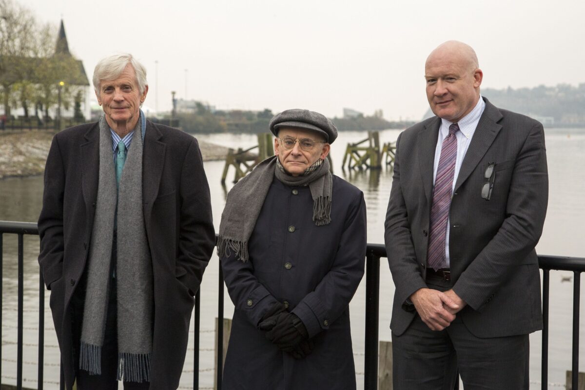 2014年11月25日,(從左到右)大衛‧喬高(David Kilgour)、大衛‧麥塔斯(David Matas)和《血腥的器官摘取/大屠殺:更新版》一書作者伊森‧葛特曼(Ethan Gutmann)合影。(Simon Gross/英文大紀元)
