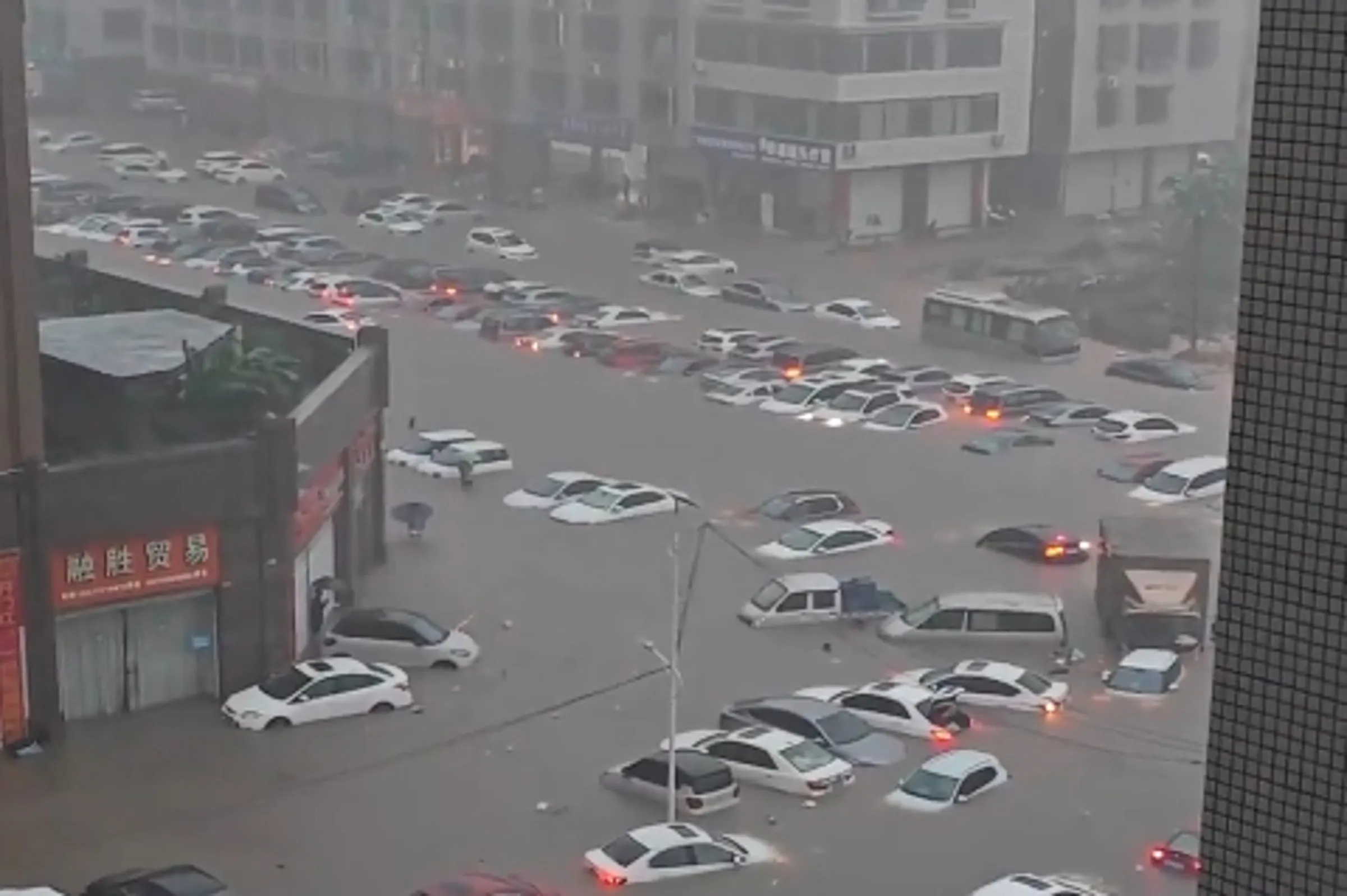 中國廣西南部遭受10年來最強烈的極端降雨襲擊,許多車主根本來不及撤離愛車,只能眼睜睜看着車輛泡在水中。(翻攝自李老師不是你老師 X)