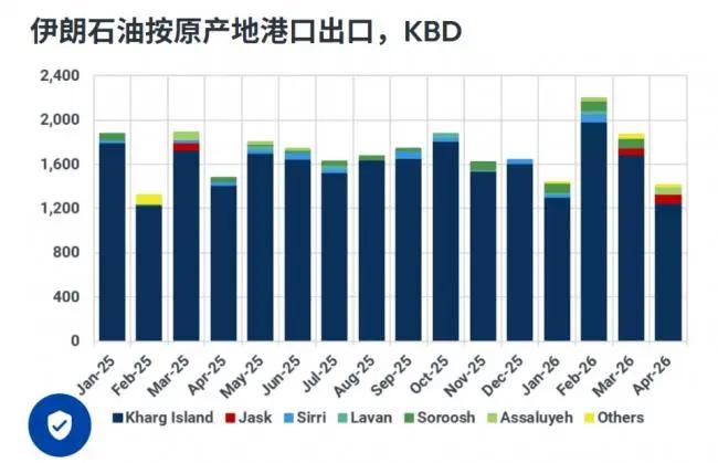 在4月14日至23日期間,僅記錄到五批貨物——三艘在卡爾格島,兩艘在阿薩盧耶——平均每日僅有56.7萬桶。