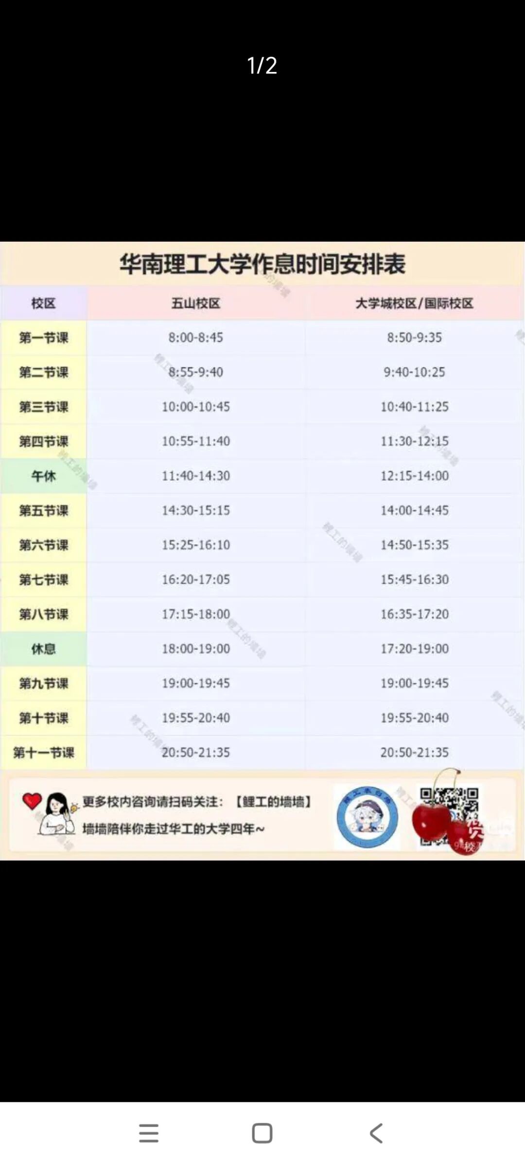 然後華工有一些大課間並沒有30分鐘,我感覺可能是校園的區別,因為在中山大學如果不行的話,有一些課程換教學樓真的是要走20分鐘。