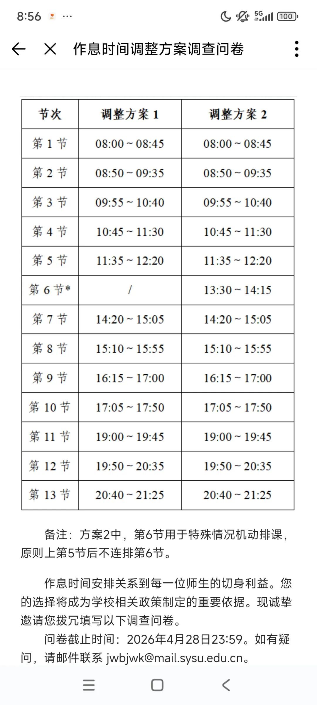 那按這個要求來說,就是一天連上13節課,然後中間大課間變成了只有20分鐘,都不夠我從逸夫樓趕去6教,並且有幾節課的課間只有5分鐘,老師再拖個堂,上個廁所都不夠。