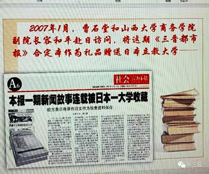 2007年1月,曹石堂和山西大學商務學院副院長容和平赴日訪問,特意攜帶刊載曹石堂故事的兩周《三晉都市報》合訂本,作為禮品贈送給日本立教大學,校方表示將譯作日文珍貴資料收藏。《三晉都市報》作為一張山西報業集團所屬的子報,走出了國門。