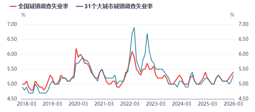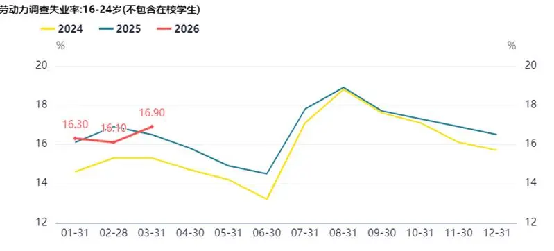 全中國城鎮調查失業率3月上升到5.4%,拋開2020-2023疫情衝擊的因素,這個數據其實已經創出2024年新高。