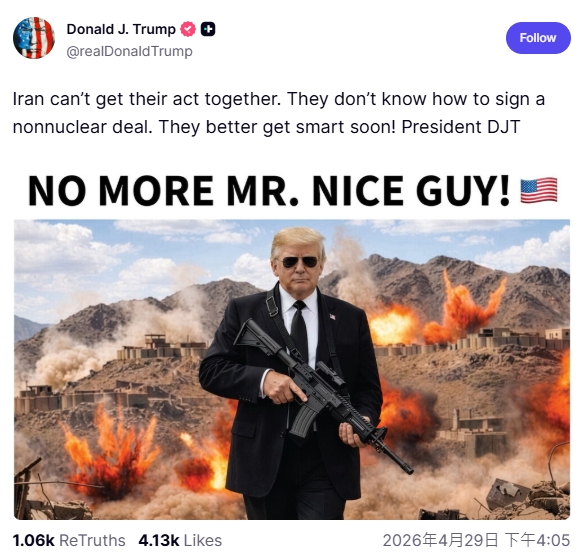 此外,根據美國《戰爭權力法》,總統未經國會授權的軍事行動即將在本周五(5月1日)達到60天的法定期限,這使得周四的簡報成為決定下一步局勢走向的關鍵節點,全球市場正高度關注未來48小時內白宮的任何決策信號。